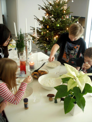 Morning of Christmas Eve, traditional rice porridge was served with cinnamon and plum soup as breakfast.
